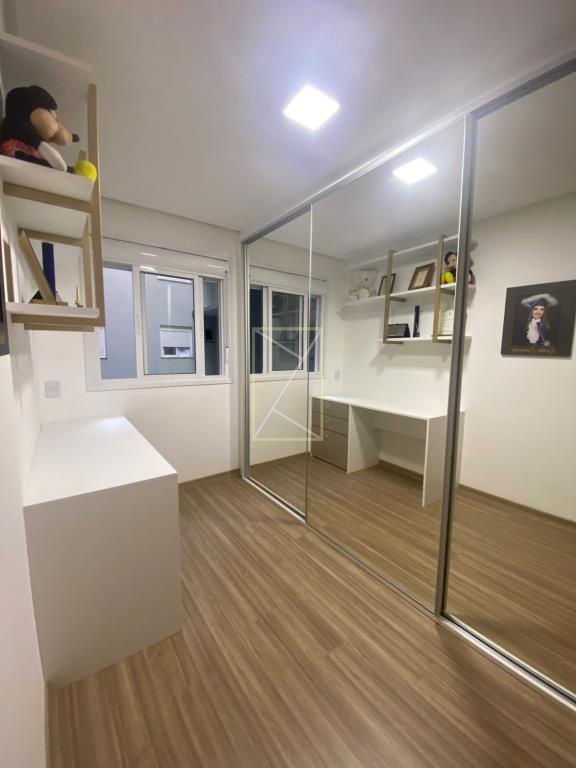 O segundo dormitório foi configurado para um escritório e closet.