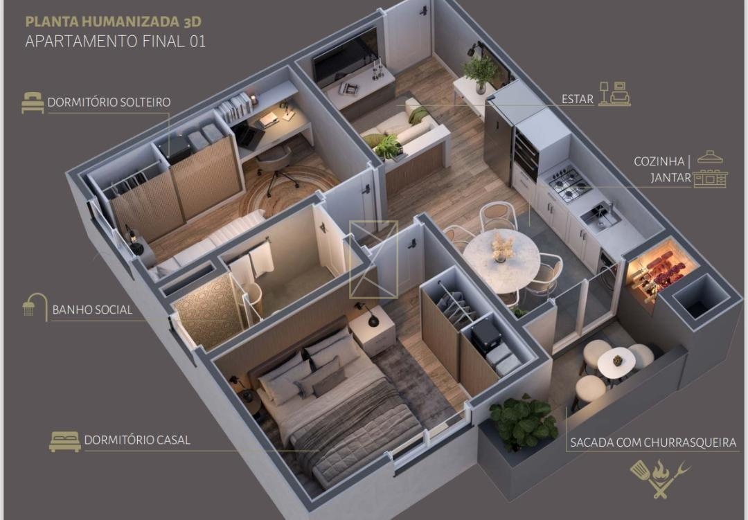 Venda: R$ 265.000,00 52,80 m²- 2 Dormitórios