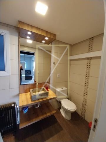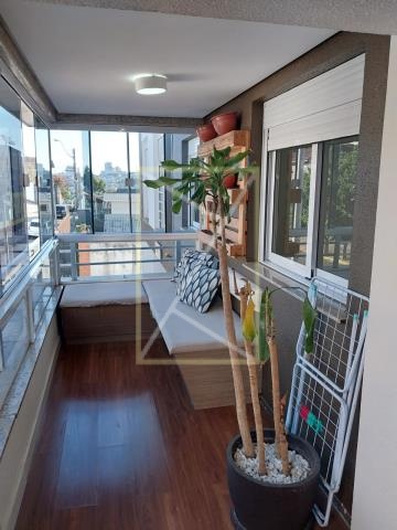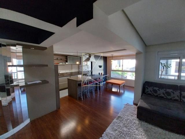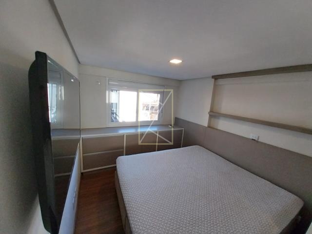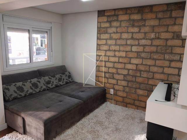 Destak Imóveis Aluga Apartamento mobiliado no Bairro Panazzolo, de 1 dormitório com suíte, sala de estar com sacada fechada, cozinha, área de serviço, banheiro social, piso laminado e porcelanato, elevador, 1 box de garagem.