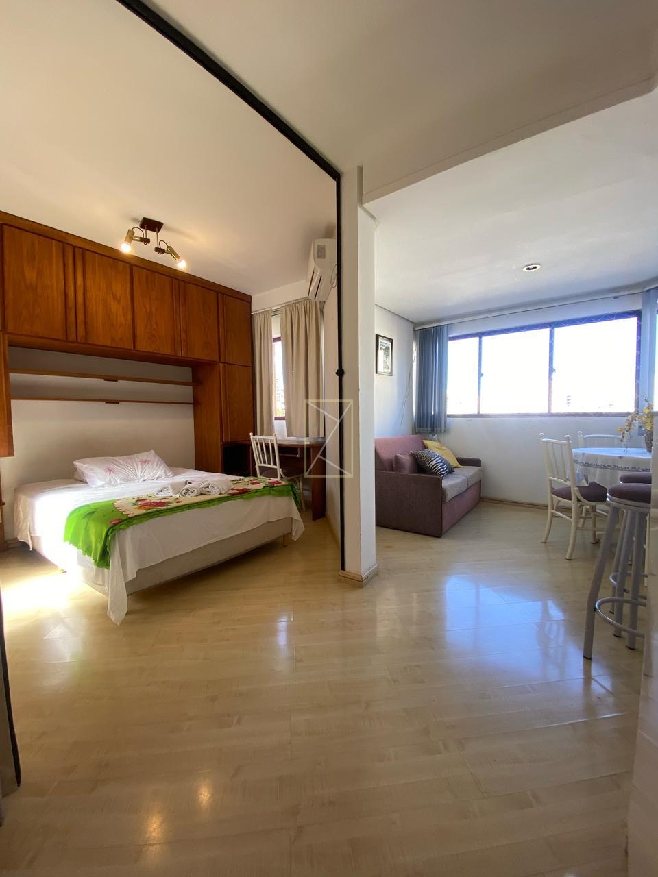 Destak Imóveis ALUGA apartamento mobiliado e equipado para locação no centro de Caxias do Sul, com 1 dormitório, banheiro, sala, ar condicionado, piso laminado e cerâmico. Condomínio com elevador, portaria 24 horas, lavanderia coletiva e possibilidade de estacionamento rotativo para locação.