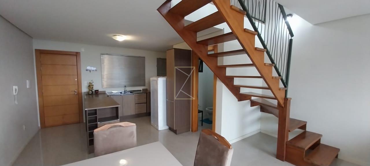 Destak Imóveis aluga apartamento duplex mobiliado, próximo a UCS, com 67m² privativos, sala dois ambientes interligadas a cozinha, 01 sacada, 02 banheiros, 01 dormitório, escritório que pode ser transformado em 2° dormitório, piso porcelanato e laminado, vaga de garagem. Prédio com elevador.