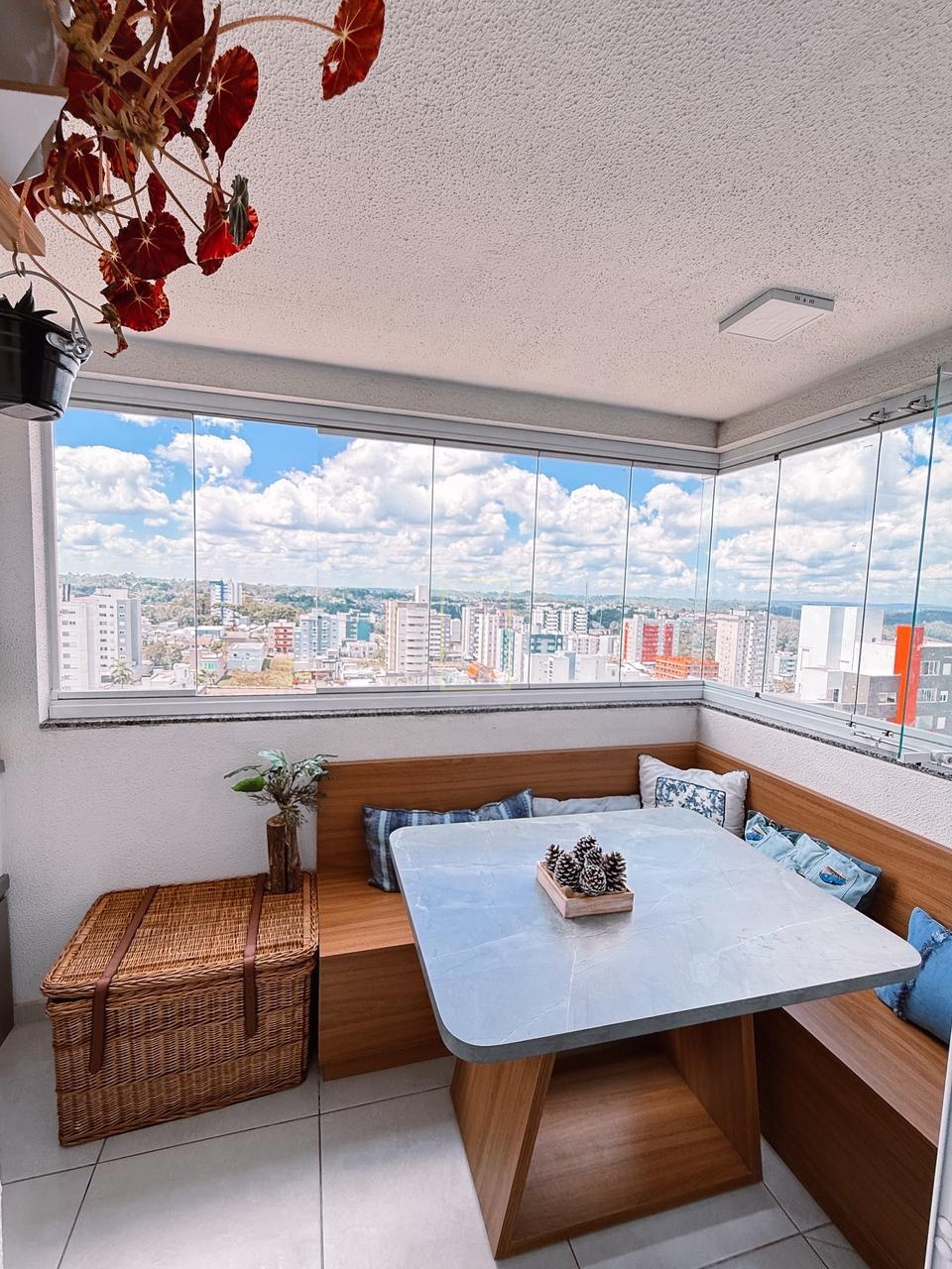 Sacada grande com churrasqueira e canto alemão sob medida (material ultra) fechada com vidro